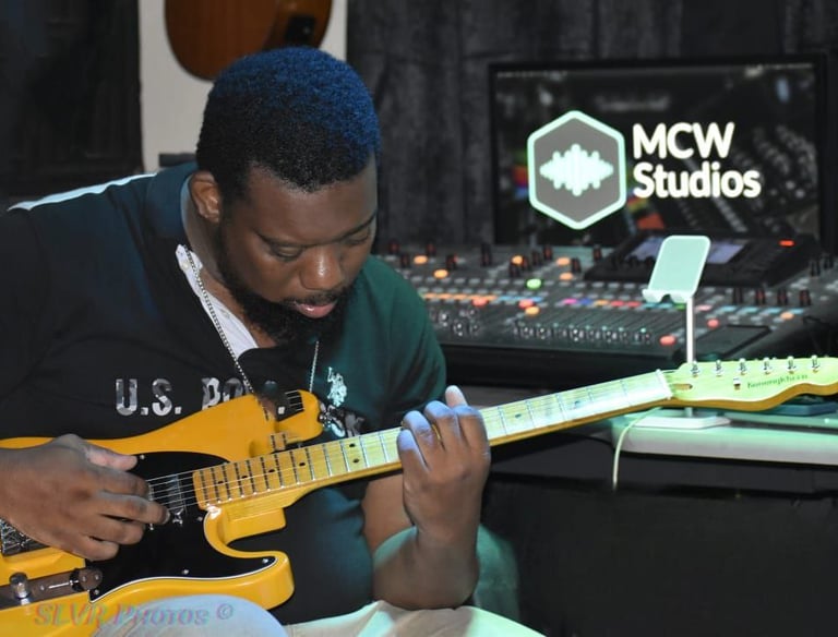 Elevate your music with our expert guitar tracking service, capturing every note and nuance to make your melodies shine.